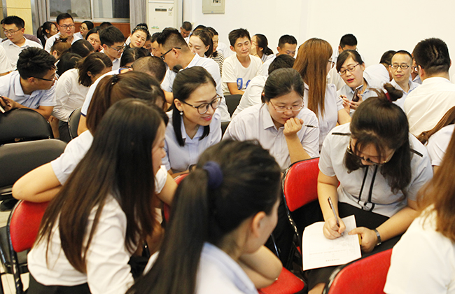 本次培訓分為理論講解和實操演練兩個環(huán)節(jié),鞏總從PDCA的內涵及實質出發(fā),闡述了PDCA在日常工作中的操作步驟和重要意義。培訓內容貼合實際,案例豐富翔實,講解深入淺出,獲得參訓人員的一致好評。之后參訓人員分別組合成六個小組進行PDCA循環(huán)實施演練,以周六大檢查活動為案例題目,在已準備好的表格上寫上檢查活動存在的問題,進行原因分析,明確目標及責任人,制定相關解決方案。各小組成員在現(xiàn)場對案例進行深入剖析和熱烈討論,共同尋找解決問題的辦法,鞏總對各小組的討論結果進行現(xiàn)場點評,使參會人員深受啟發(fā)。